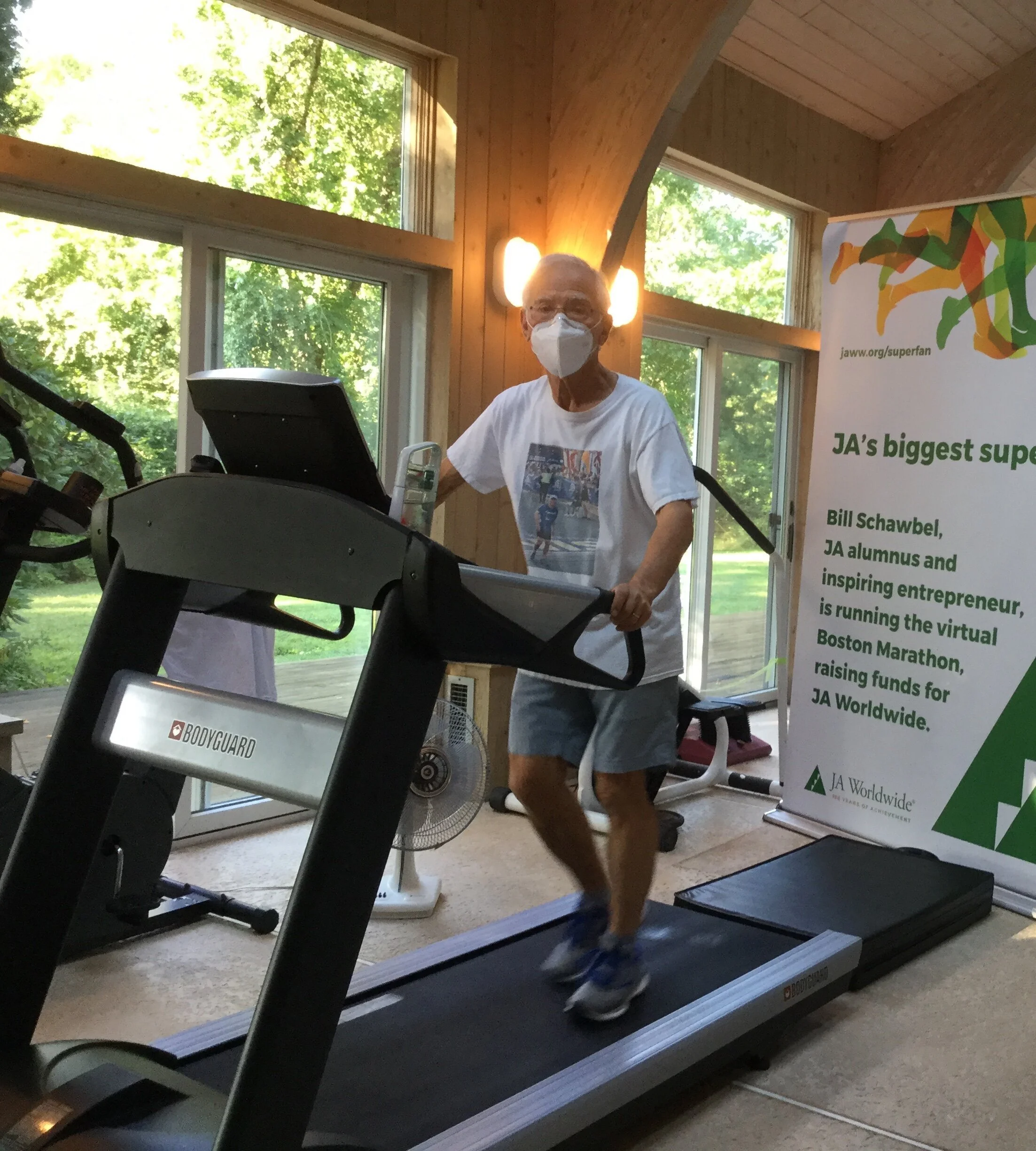 An experienced marathoner, Bill would run the Boston Marathon for the seventh time, but this time at his home in Needham, Massachusetts, USA, completing the entire marathon on a treadmill. Blessed with an exceptional workout facility on his property, Bill arranged for supporters to cheer him on, rotating every hour and watching from a safe distance. And he and Leo raised over US $125,000 for JA.